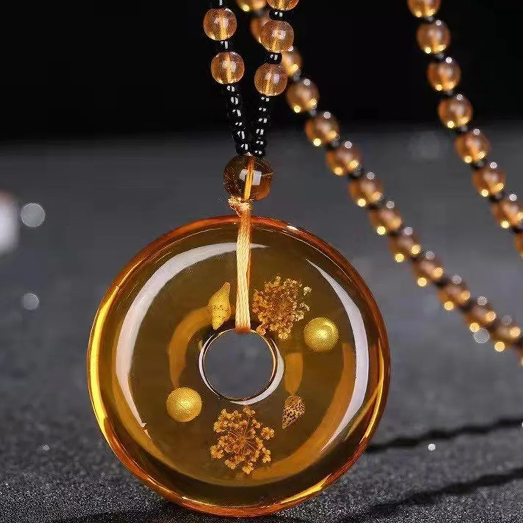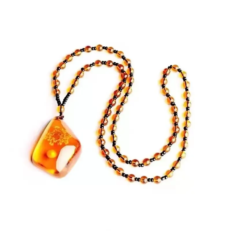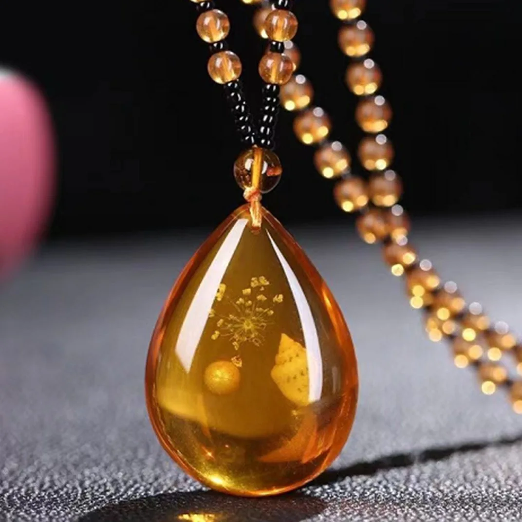 Amber Beeswax Necklace Heart Flower Drops Imitation Yellow Jade Pendant for Women Unisex Unique Necklace Jewelry Gift