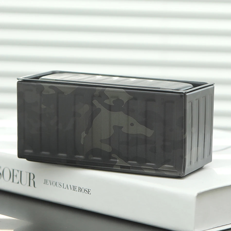 3. This storage box adopts a unique sea freight container design, with various patterns on the container, which can add industrial fashion to the office desk.