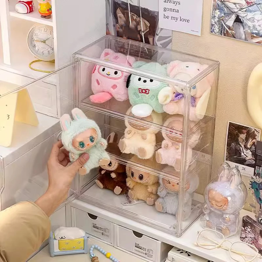 New Labubu Storage Box Transparent Acrylic Display Boxes Dustproof Doll Figure Blind Box Organizer Cabinet Display Stand