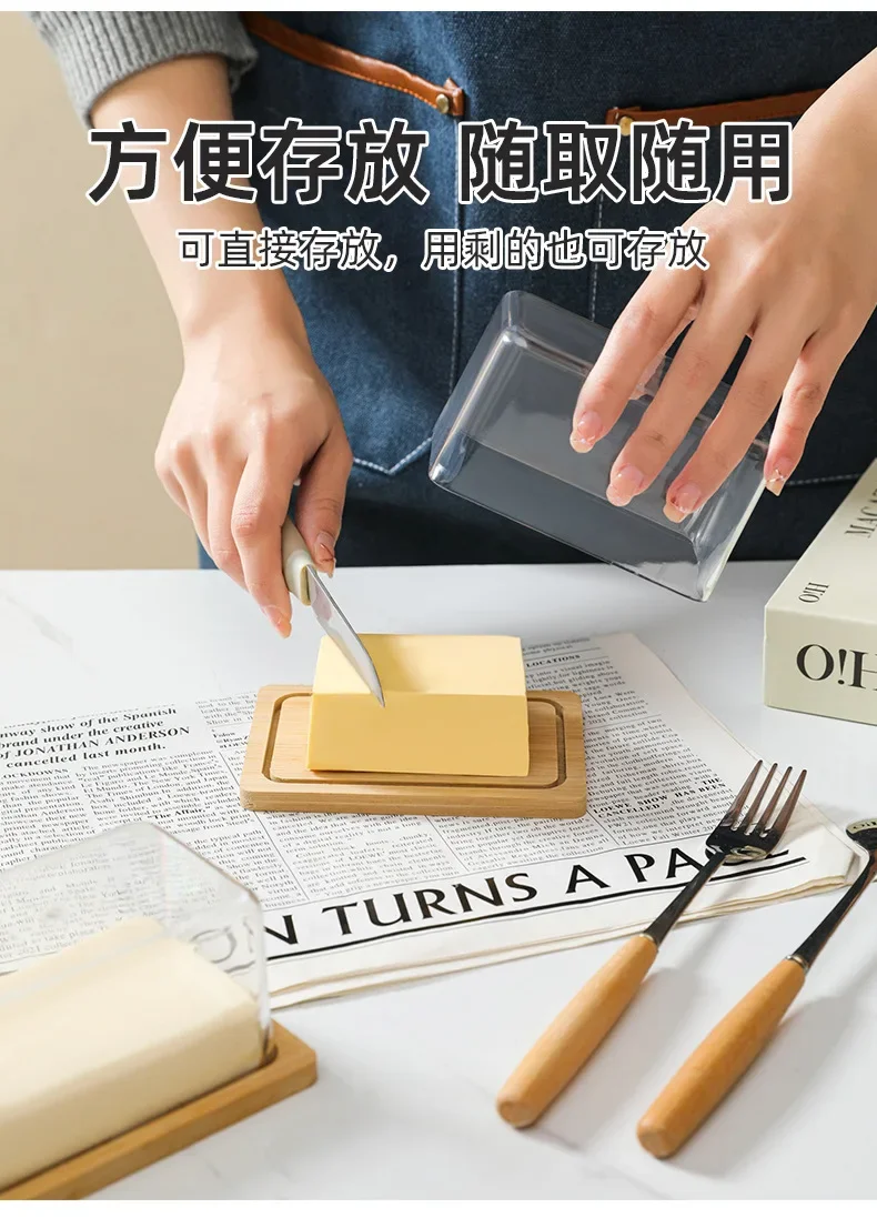 Nordic Countertop Bamboo Butter Dish Plate with Transparent Acrylic Lid Kitchen Storage Butter Container Box Butter Tableware